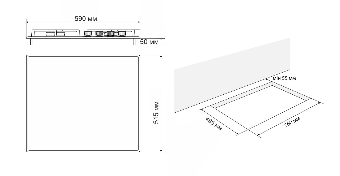 Розміри ніші для вбудовування ширина (Ш), мм | 560 |