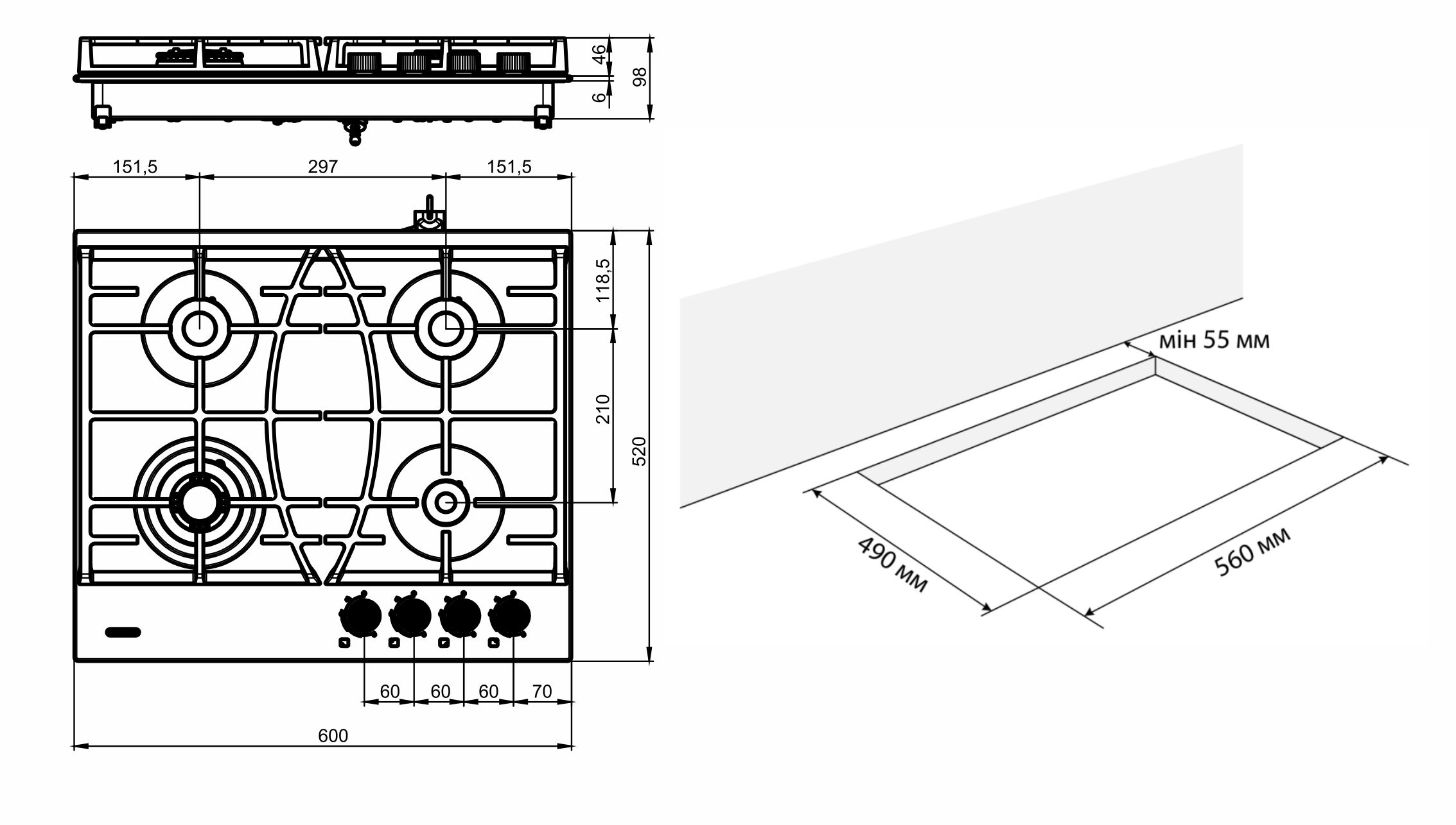 Розміри ніші для вбудовування ширина (Ш), мм | 560 |