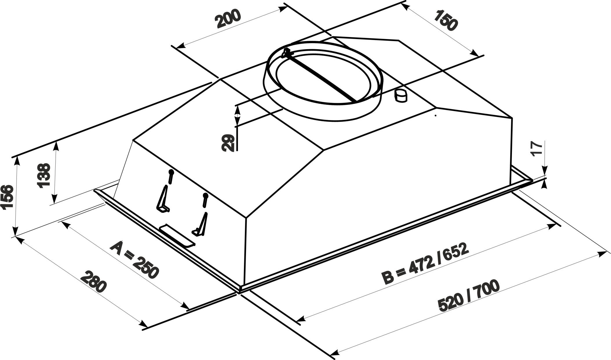 Кухонная вытяжка Modul 700 LED SMD 52 IS от ТМ ELEYUS имеет существенное преимущество перед другими вытяжками этого же типа - высота ее встроенной части составляет лишь 138 мм, что позволит с легкостью встроить ее в элемент интерьера, изготовленный по Вашему вкусу.