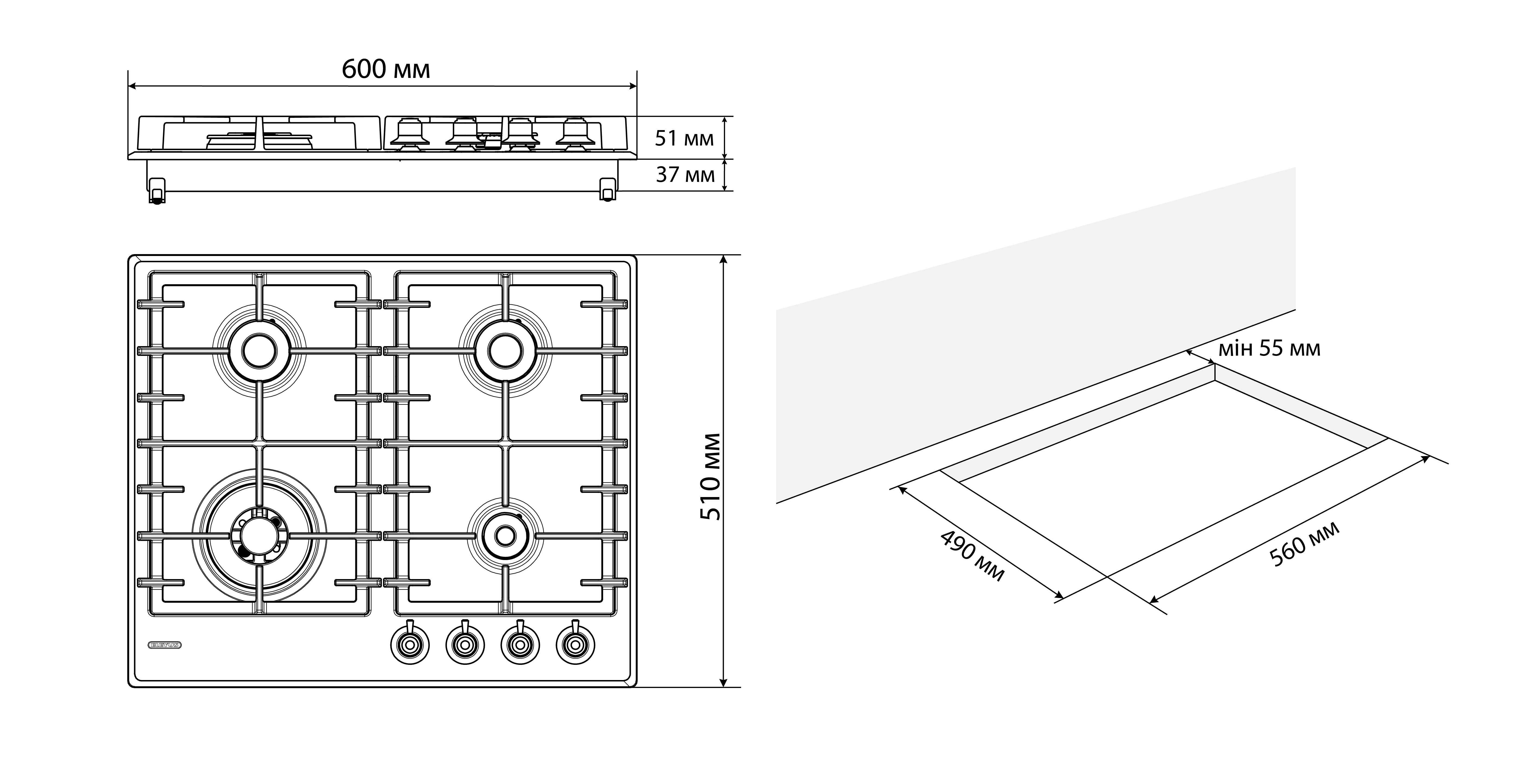 Розміри ніші для вбудовування ширина (Ш), мм | 560 |