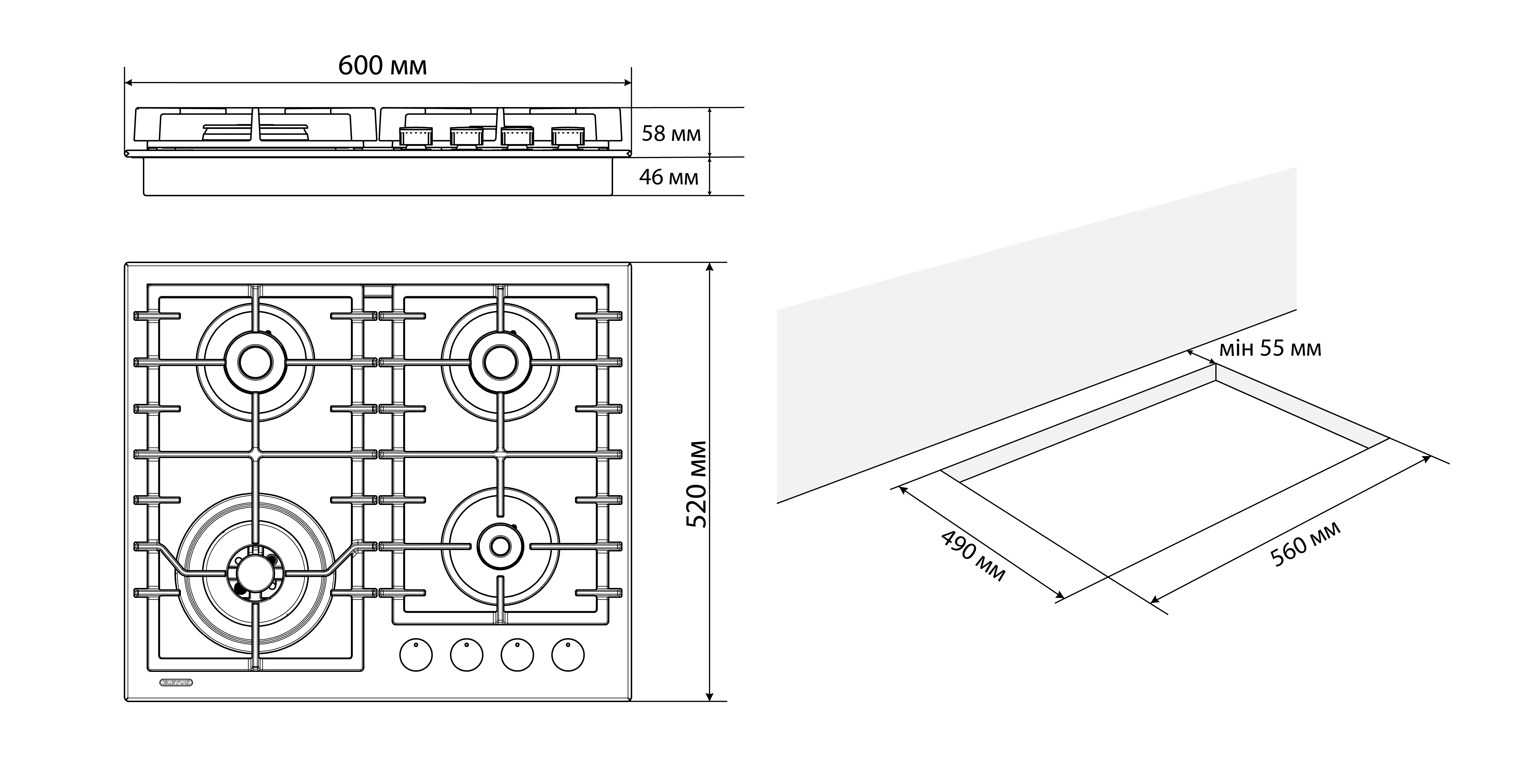 Розміри ніші для вбудовування ширина (Ш), мм | 560 |